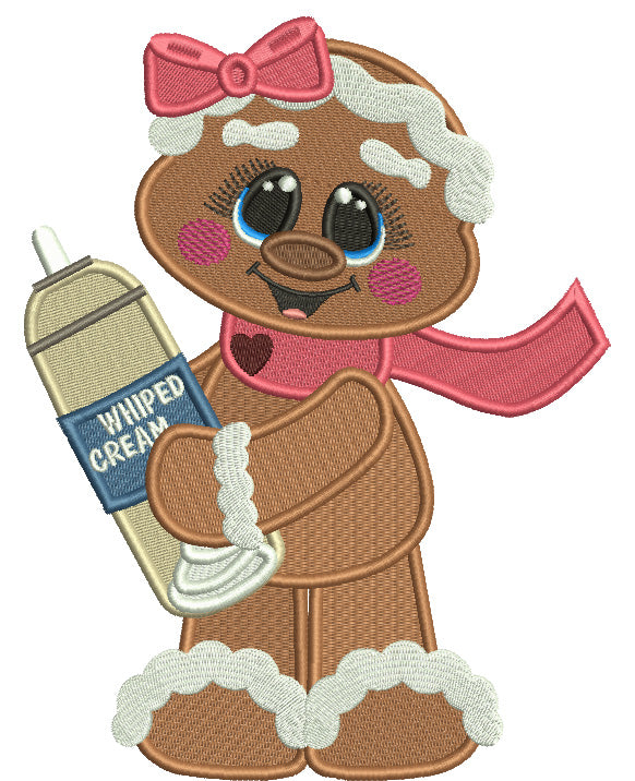 Gingerbread Girl Holding Can Of Whip Cream Christmas Filled Machine Embroidery Design Digitized Pattern