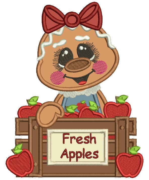 Gingerbread Girl With Fresh Apples Fall Applique Thanksgiving Machine Embroidery Design Digitized Pattern