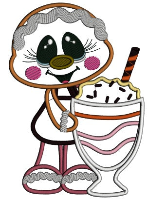 Gingerbread Girl With Hot Cup of Cocco Fall Applique Machine Embroidery Design Digitized Pattern