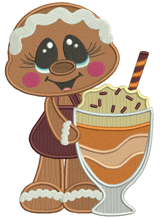 Gingerbread Girl With Hot Cup of Cocco Fall Filled Machine Embroidery Design Digitized Pattern