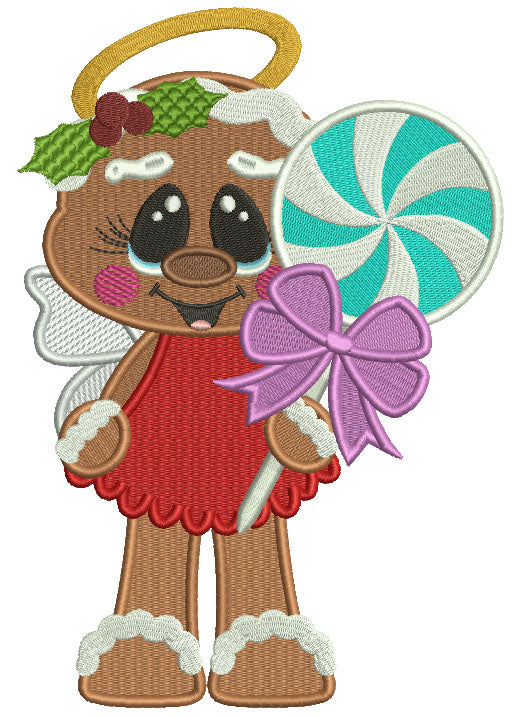 Gingerbread Man Angel Holding a Popsicle Filled Christmas Machine Embroidery Design Digitized Pattern