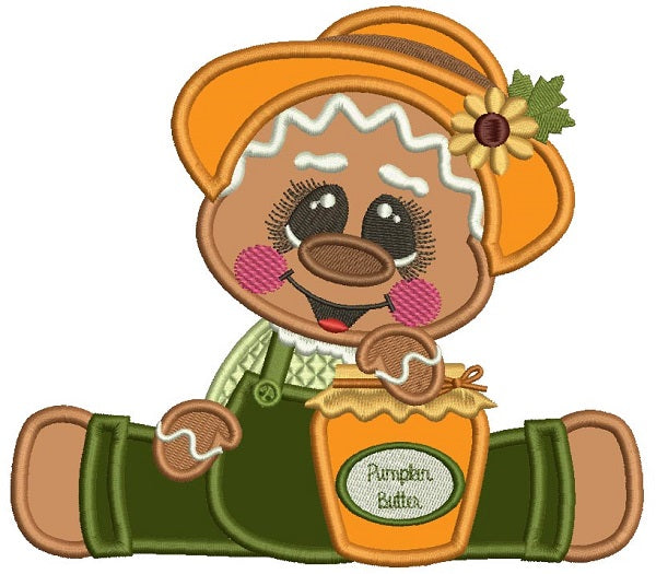 Gingerbread Man Holding a Pumpkin Butter Fall Thanksgiving Applique Machine Embroidery Design Digitized Pattern