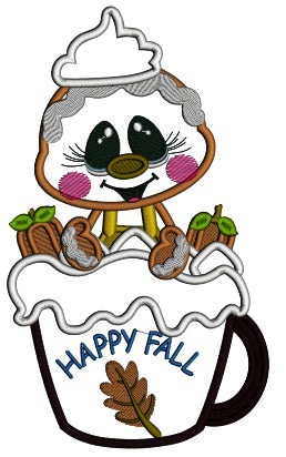 Gingerbread Man Holding Happy Fall Coffee Cup Applique Thanksgiving Machine Embroidery Design Digitized Pattern