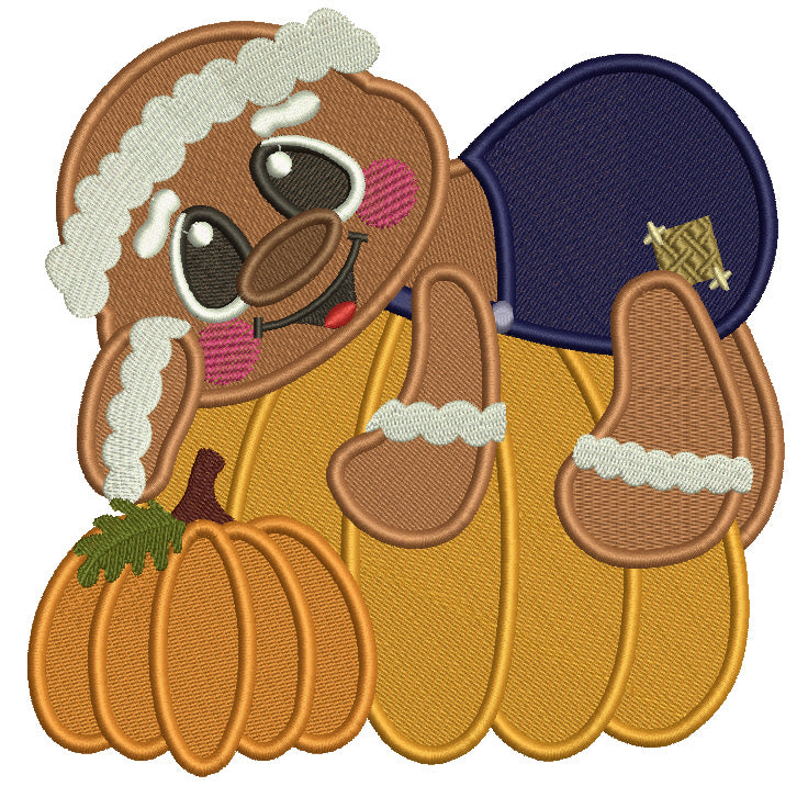 Gingerbread Man Laying On A Huge Pumpkin Fall Filled Machine Embroidery Design Digitized Pattern