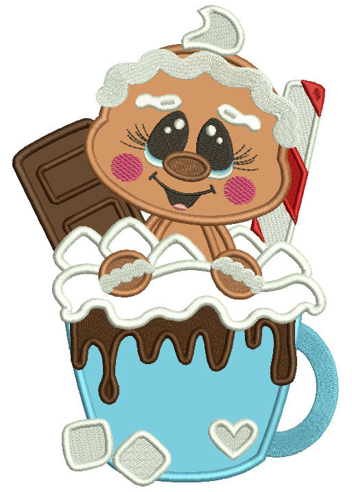 Gingerbread Man Sitting Inside Cocoa Cup Applique Christmas Machine Embroidery Design Digitized Pattern