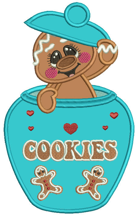Gingerbread man Sitting Inside Cookies Jar Christmas Applique Machine Embroidery Design Digitized Pattern