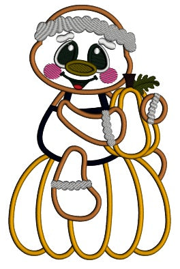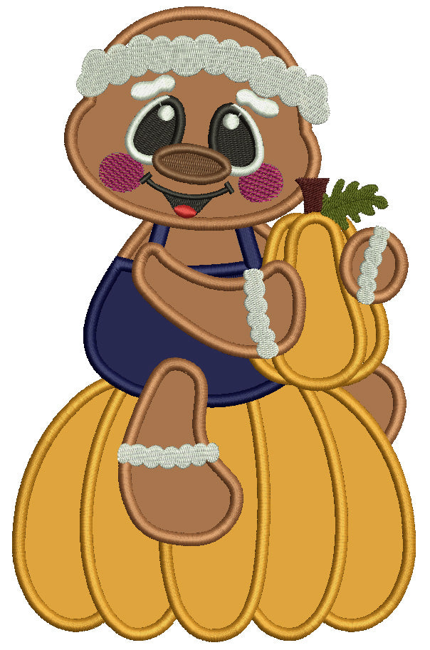 Gingerbread Man Sitting On the Big Pumpkin And Holding a Small Pumpkin Fall Applique Machine Embroidery Design Digitized Pattern