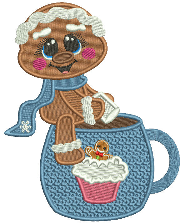 Gingerbread Man Sitting On The Cup Of Hot Cocoa Christmas Filled Machine Embroidery Design Digitized Pattern