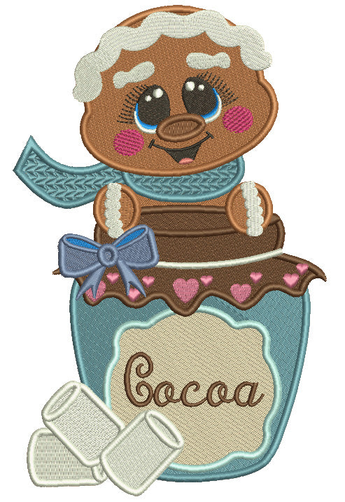 Gingerbread Man With Cocoa And Marshmallow Christmas Filled Machine Embroidery Design Digitized Pattern