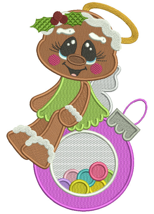 Gingerbread Man Sitting On The Christmas Ornament Filled Machine Embroidery Design Digitized Pattern