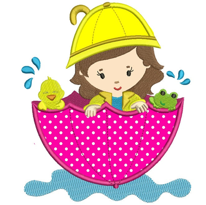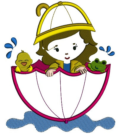 Girl And Chick In The Umbrella Floating In The Pond Applique Machine Embroidery Digitized Design Pattern