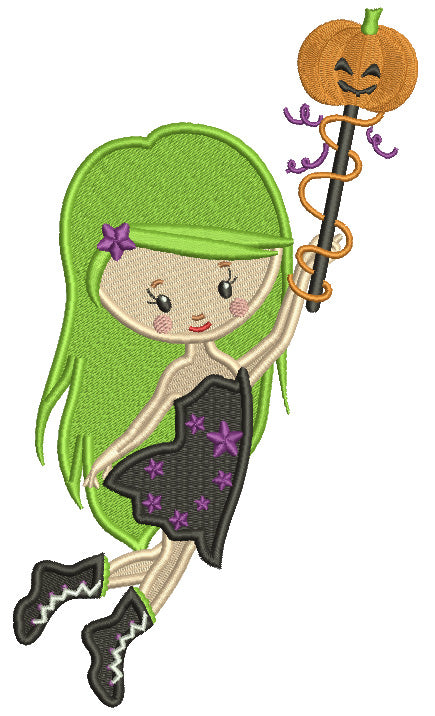 Girl WIzard WIth Pumpkin Wand Halloween Filled Machine Embroidery Design Digitized Pattern