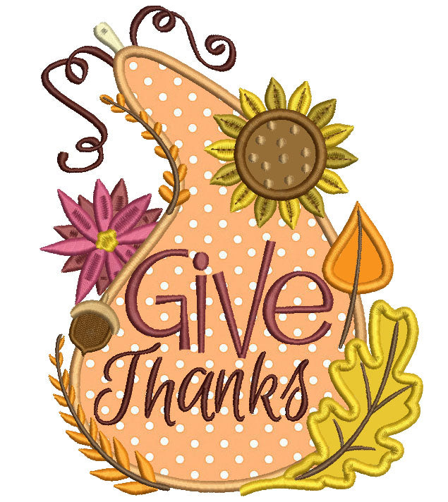 Give Thanks Gourd Thanksgiving Applique Machine Embroidery Digitized Design Pattern