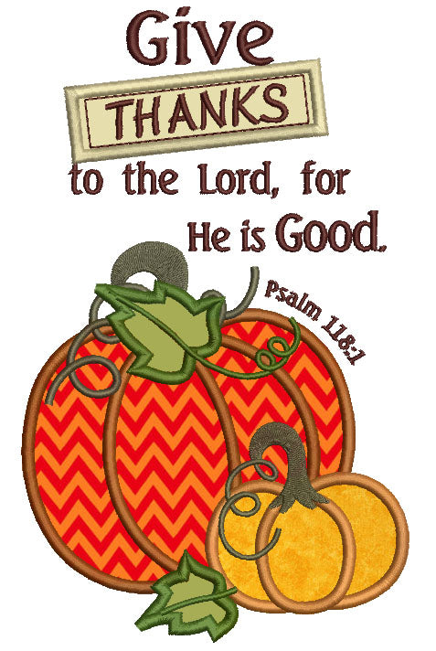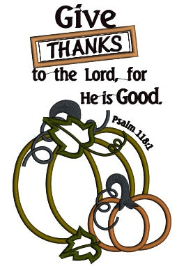 Give Thanks To The Lord For He is Good Pumpkin Applique Machine Embroidery Digitized Design Pattern