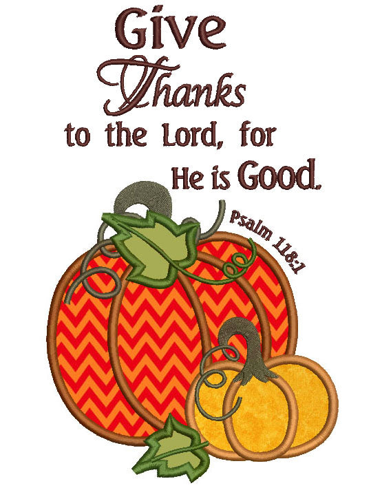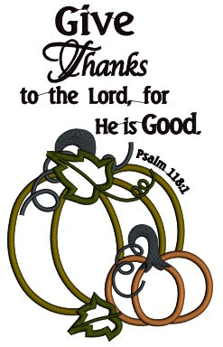 Give Thanks To The Lord For He is Good Pumpkin Without Frame Applique Machine Embroidery Digitized Design Pattern