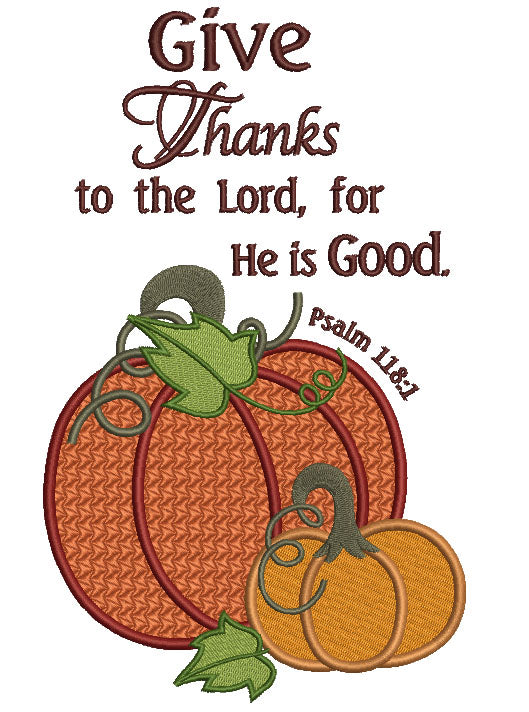 Give Thanks To The Lord For He is Good Pumpkin Without Frame Filled Machine Embroidery Digitized Design Pattern