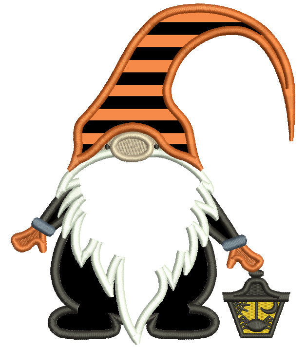 Gnome Holding Lantern Halloween Applique Machine Embroidery Design Digitized Pattern