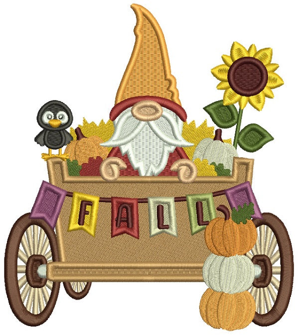 Gnome Sitting In The Wagon With Pumpkins Fall Filled Machine Embroidery Design Digitized Pattern