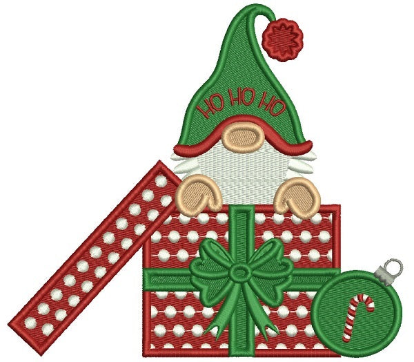 Gnome Sitting Inside a Box With Presents Wearing Santa Hat Christmas Filled Machine Embroidery Design Digitized Pattern