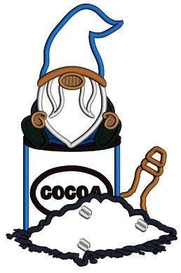 Gnome Sitting On The Can Of Cocoa Christmas Applique Machine Embroidery Design Digitized Pattern