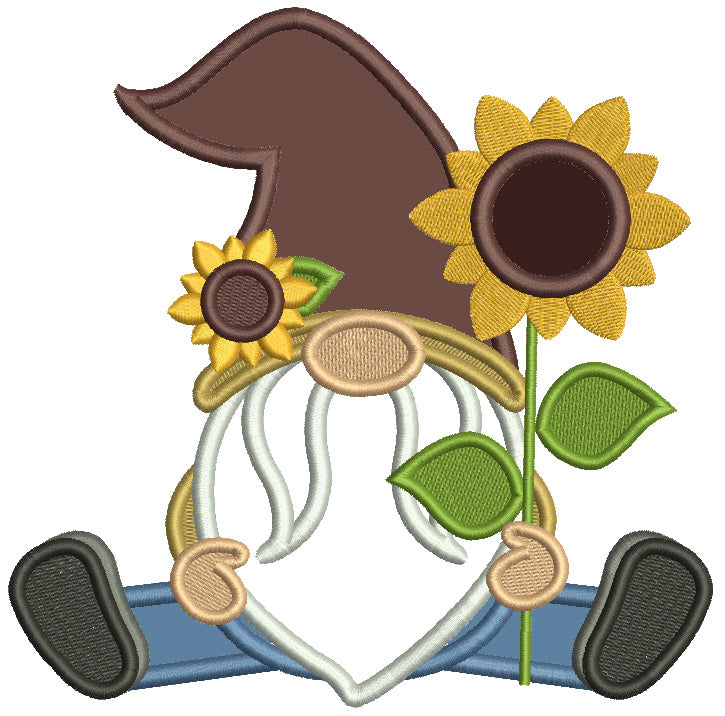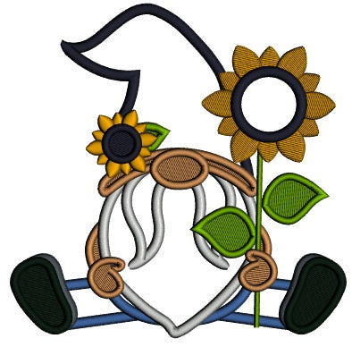 Gnome With a Big Sunflower Thanksgiving Applique Machine Embroidery Design Digitized Pattern