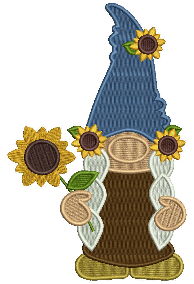 Gnome With Big Hat And Sunflowers Fall Filled Machine Embroidery Design Digitized Pattern