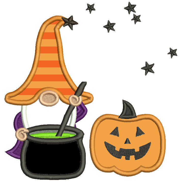 Gnome Wizard And a BIg Pumpkin Halloween Applique Machine Embroidery Design Digitized Pattern