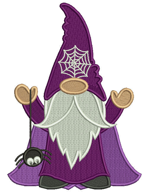 Gnome Wizard Holding a Spider Halloween Filled Machine Embroidery Design Digitized Pattern