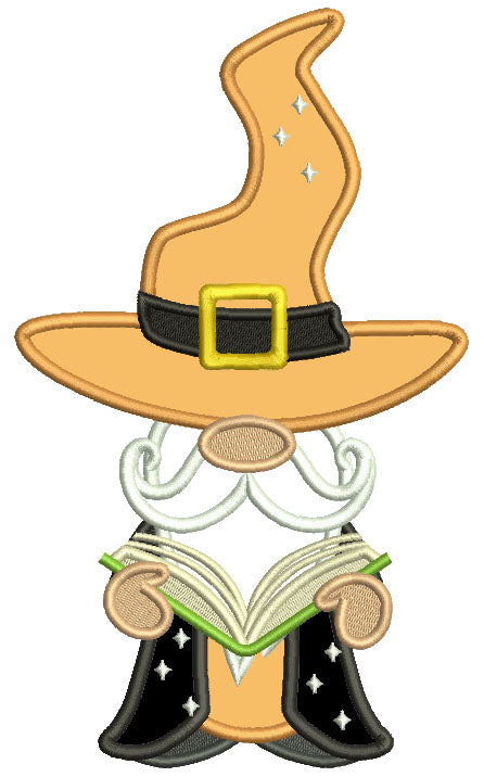 Gnome Wizard Reading a Book Halloween Applique Machine Embroidery Design Digitized Pattern