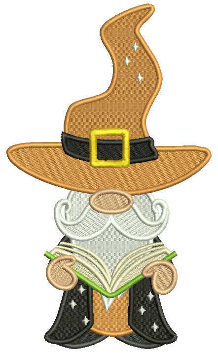 Gnome Wizard Reading a Book Halloween Filled Machine Embroidery Design Digitized Pattern