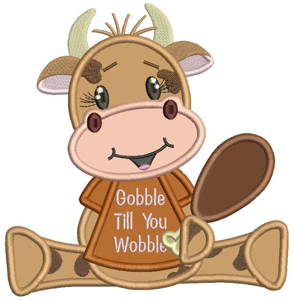 Gobble Til You Wobble Cute Cow Applique Thanksgiving Machine Embroidery Design Digitized Pattern