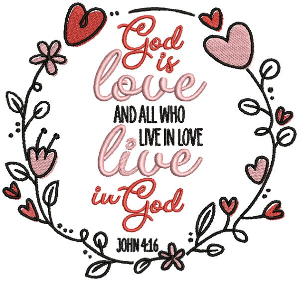 God Is Love And All Who Live In Love Live In God John 4-16 Bible Verse Religious Filled Machine Embroidery Design Digitized Pattern