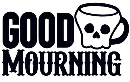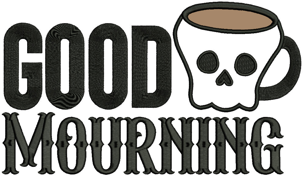 Good Mourning Skull Mug Halloween Applique Machine Embroidery Design Digitized Pattern