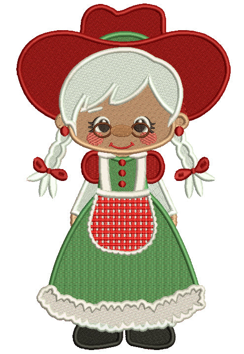 Grandma Wearing Christmas Dress Filled Machine Embroidery Design Digitized Pattern