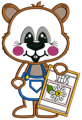Groundhog Holding Bag of Seeds Applique Machine Embroidery Design Digitized Pattern