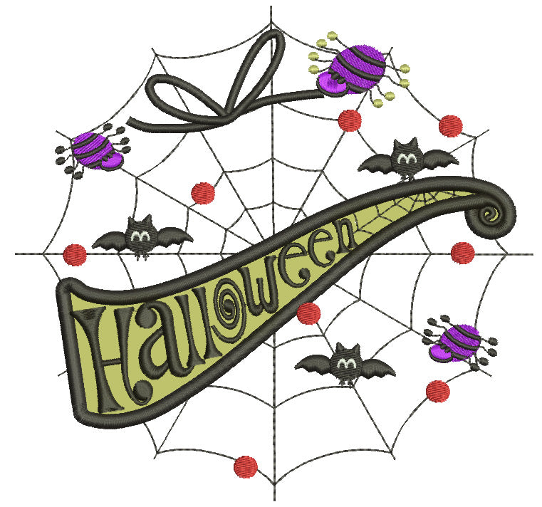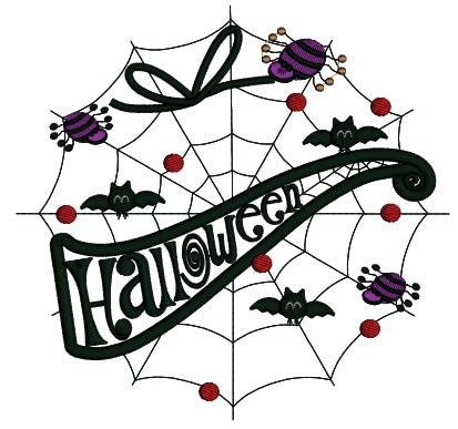 Halloween Spider Web With Bats and Spiders Applique Machine Embroidery Digitized Design Pattern