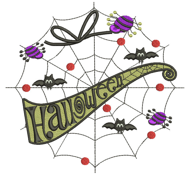 Halloween Spider Web With Bats and Spiders Filled Machine Embroidery Digitized Design Pattern