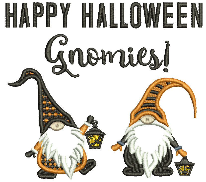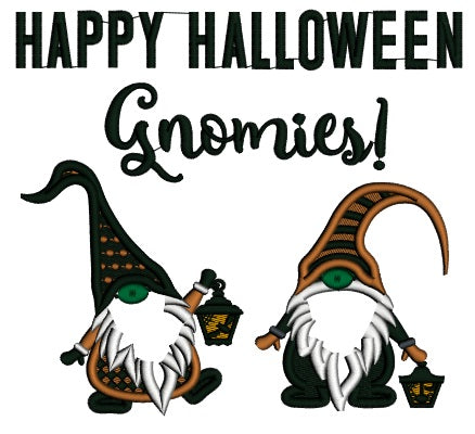 Happy Halloween Gnomes With Lanterns Applique Machine Embroidery Design Digitized Pattern