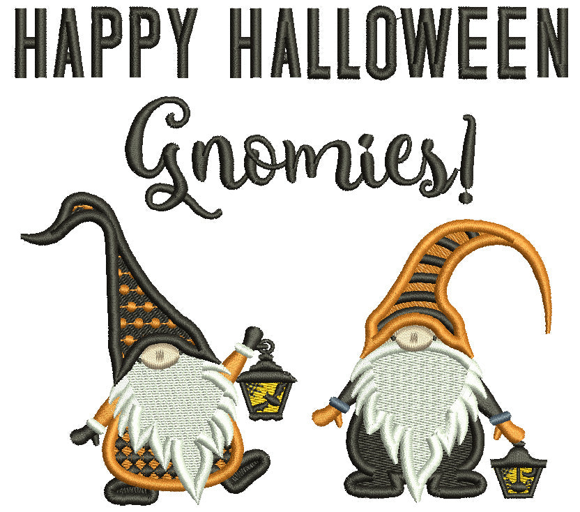 Happy Halloween Gnomes With Lanterns Filled Machine Embroidery Design Digitized Pattern
