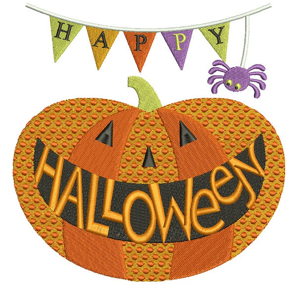 Happy Halloween Smiling Pumpkin Filled Machine Embroidery Design Digitized Pattern