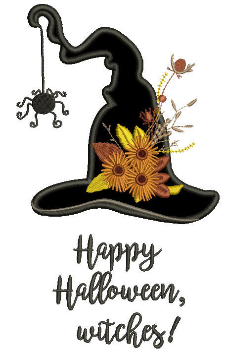 Happy Halloween Witches Hat With a Spider Halloween Applique Machine Embroidery Design Digitized Pattern
