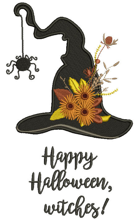 Happy Halloween Witches Hat With a Spider Halloween Filled Machine Embroidery Design Digitized Pattern