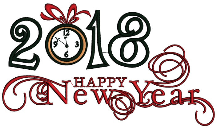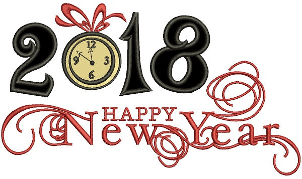 Happy New Yaer 2018 Applique Machine Embroidery Design Digitized Pattern