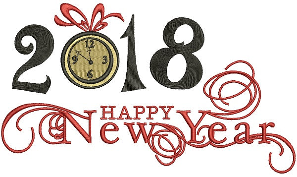 Happy New Yaer 2018 Filled Machine Embroidery Design Digitized Pattern