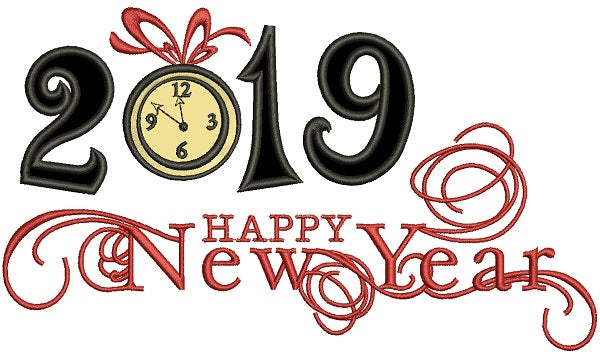 Happy New Year 2019 Applique Machine Embroidery Design Digitized Pattern