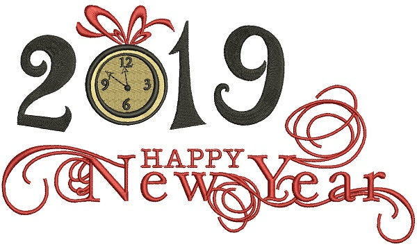 Happy New Year 2019 Filled Machine Embroidery Design Digitized Pattern