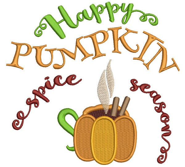 Happy Pumpkin Spice Season Filled Machine Embroidery Design Digitized Pattern