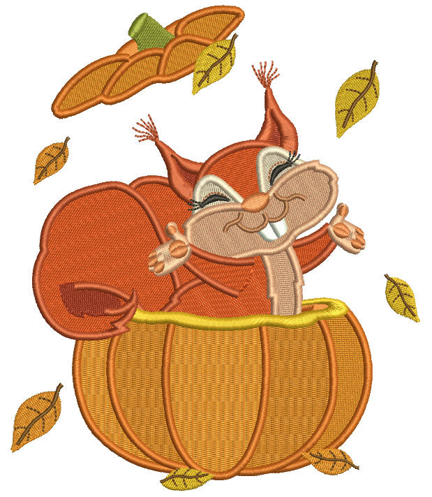 Happy Squirrel Inside a Pumpkin Filled Machine Embroidery Design Digitized Pattern