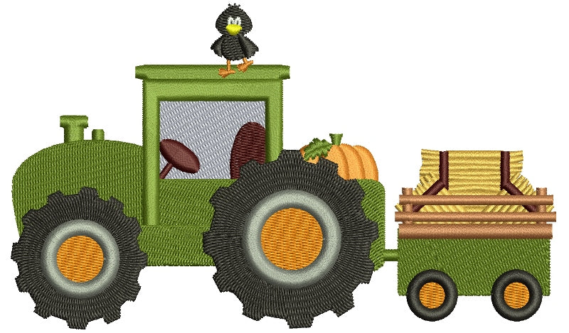 Harvest Fall Hayride Tractor Filled Machine Embroidery Digitized Design Pattern