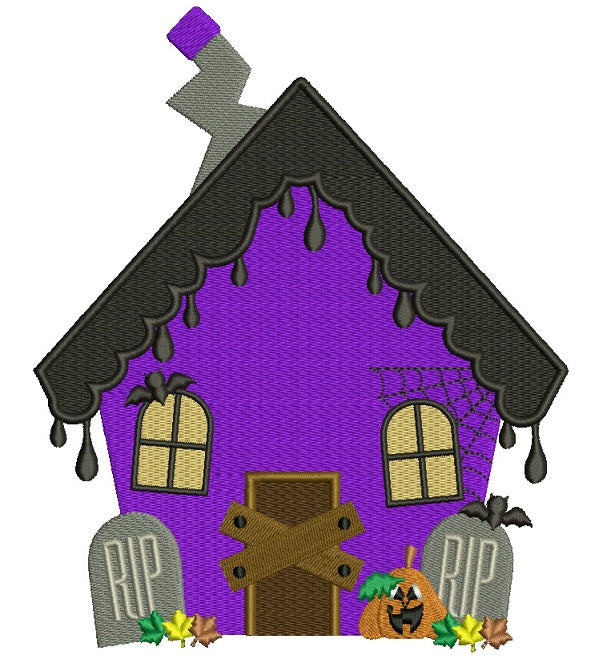 Haunted House RIP Halloween Filled Machine Embroidery Design Digitized Pattern